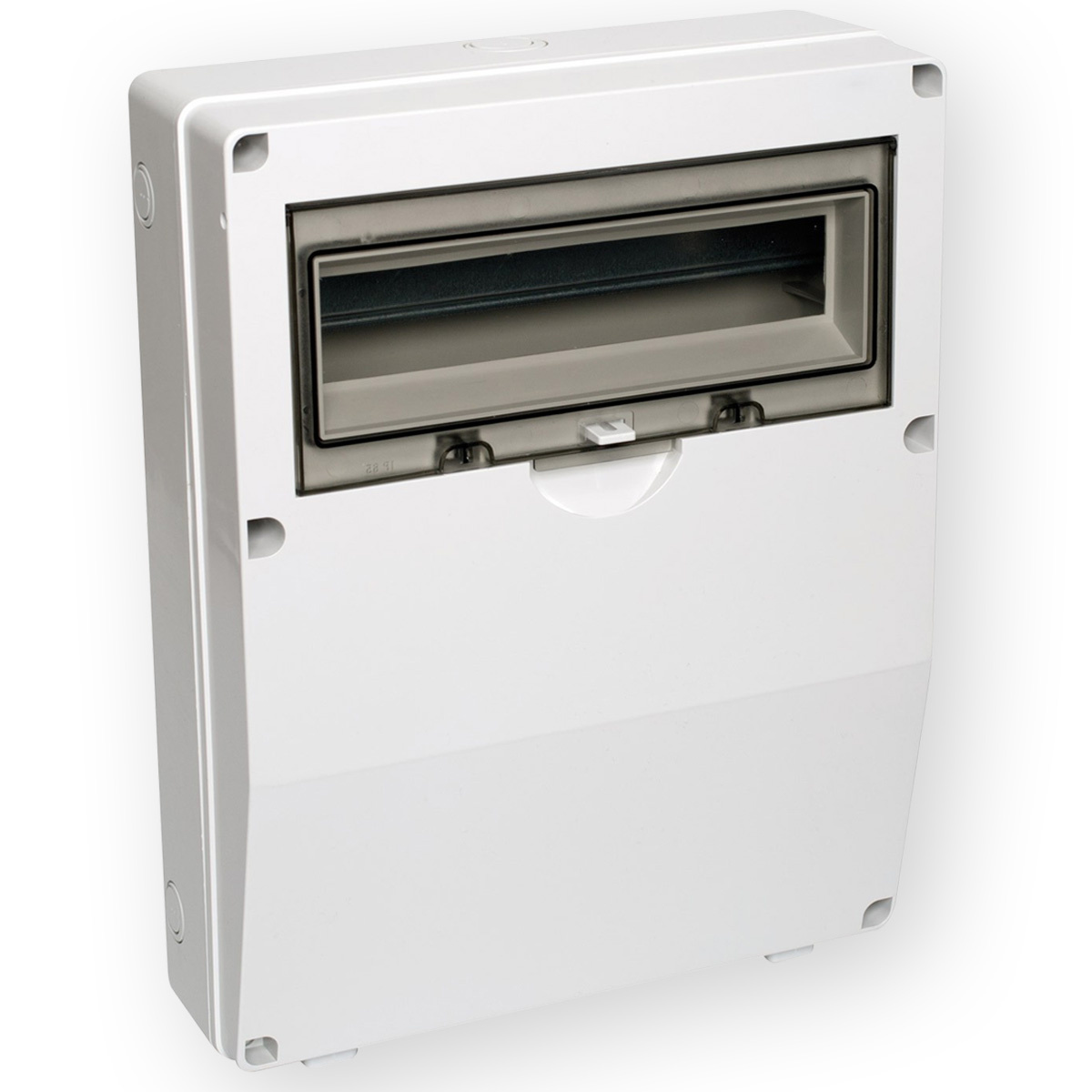 Compacte wandverdeler voor vaste wandmontage. Slagvaste behuizing van hoogwaardige ABS-kunststof met transparante, slagvaste polycarbonaat afdekking. Afmeting van deze wandverdeler zijn 440x340x127mm.
